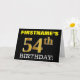 Den här födelsedagskalenderns hälsningskort innehåller ett meddelande som "FIRSTNAME's 54:e BIRTHDAY!", där "54:e" har ett utseende som liknar guld och liknar färg. Mottagarens namn på framsidan kan anpassas, och bakgrunden är svart på färgad. Det innehåller också ett hälsning-meddelande från anpassadets födelsedag på insidan. Ett sådant här födelsedagshälsningskort kan kanske ges till någon i firande på deras femtiofjärde födelsedag. [~Z0000183]