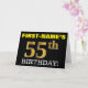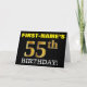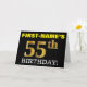 Den här födelsedagskalenderns hälsningskort innehåller ett meddelande som "FIRST-NAMN's 55:e BIRTHDAY!", där "55:e" har ett utseende som liknar guld och liknar färg. Mottagarens namn på framsidan kan anpassas, och bakgrunden är svart på färgad. Det innehåller också ett hälsning-meddelande från anpassadets födelsedag på insidan. Ett sådant här födelsedagskalkkort skulle kanske kunna ges till någon i firande på deras femtiofemårsdag. [~Z0000183]