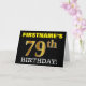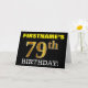 Den här födelsedagshälsningskortet har ett meddelande som "FIRSTNAME's 79:e BIRTHDAY!", där "79:e" har ett utseende som liknar guld och liknar färg. Mottagarens namn i framkanten kan vara personlig, och den främre bakgrunden är färgad svart. Det innehåller också ett hälsning-meddelande från anpassadets födelsedag på insidan. Ett sådant här födelsedagshälsningskort skulle kanske kunna ges till någon i firande på sin sjuttionionde födelsedag. [~Z0000183]