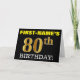 Den här födelsedagskalenderns hälsningskort innehåller ett meddelande som "FÖRST-NAMN's 80:e BIRTHDAY!", där "80:e" har ett utseende som liknar guld och liknar färg. Mottagarens namn i framkanten kan vara personlig, och den främre bakgrunden är färgad svart. Det innehåller också ett hälsning-meddelande om personligens födelsedag på insidan. Ett sådant här födelsedagshälsningskort kan kanske ges till någon i firande på deras åttioårsdag. [~Z0000183]