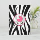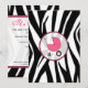 En inbjudan med en svart zebra tryck-bakgrund med shock rosa-trim. Anpassa den svarta och rosa teckensnittstexten med information om händelsen. Motsatt sida är fast zebra tryck med en rosa baby-vagn inuti en passande cirkelformad ram.