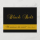 Vänner och familj i inbjudan för att delta i martialkonstens svarta bälte-test och se hur du befordrar till den uppskattade nivån av svarta bälte med det här anpassningsbarna svarta Bälte promotion-vykort. Kortet är svart med ett guld-band och har det inspirerande och motiverande kinesiska ordspråket "Resan är belöningen".