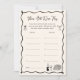 Gör din möhippa oförglömlig med den här Personligen Black Italian Möhippa Guessing Game Card. Perfekt för att lägga till en roligt till firande, det här kortet passar perfekt in i det som är mer möhippa, det är mer tematiska möhippor och kursiva möhippor. Det är det idealiska tillägget till kursivtemat möhippa och italien temat möhippa, skapar extra speciellt. Perfekt för en förlovningsfest eller ett pizzatema möhippa firande!