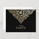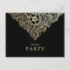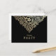 Julens lyxftekort Party Guld Faux-kort med baroque guld dekoration på svart bakgrund. Skapa din egen elegant och sofistikerade julparsinbjudningar med den här snyggten. Typografi, jultomte party, modern guld-bakgrund, guld-jultomma, middagsjulklappar, nya året kväll party, julgran.