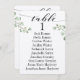 Teckenfärgad kalligrafi som byts ut mot skarp vit papper med grönt eucalyptus sprigs-bord-kort med sittande namn för tio personer.