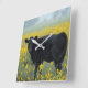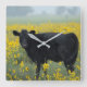 Svart kalv i en Fält av solblommor Fyrkantig Klocka