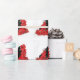 Svart kanin leker med och försöker kasta djur älskare i poinsettia jultomte papper