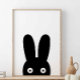 Svart kanin, skogsdjur, barnkammarväggkonst, skandinavisk, barnkammardekoration, minimalistisk.