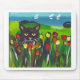 Svart katt amongst tulpan musmatta