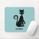 Elegant svart katt som pockar med en tass upphöjd. Har en söt svan och har finare-choker på sig. Anpassa med namn.