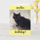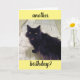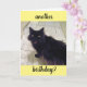 Detta gratulationskort visar en fluffig svart katt med en överraskad min och orden 'En födelsedag till?'. Insidan lyder ' Oroa dig inte! Du blir bara bättre med åren!'