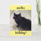 Det här gratulationskortet har en fluffig svart katt med en förvånad min och orden 'En ny födelsedag?'. Insidan lyder: ' Oroa dig inte! Du blir bara bättre med åren!'