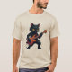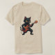En bild av en svart katt som spelar en gitarr. Total rock och roll.