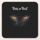 Skrämmande svarta katts ögon roliga pappersunderlägg för din Halloweenfest. Bus eller godis kan ändras till Glad Halloween eller din egen text.