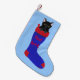 Svart kattunge, katt som klättrar upp ur ett rött och blått julstrumpor, trycks på ett rött och blått julstrumpor. Det finns en platshållare som du kan anpassa för en uppsättning och eller för kattälskare. Tack för att du shoppade på CherylsArt på Zazzle.