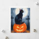 Svart Katt Jack-O-Lantern Halloween Målad Julkort