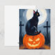 Svart Katt Jack-O-Lantern Halloween Målade Julkort