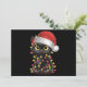 Svart Katt Julgran Ljusslingor Rolig Tomte Kattung Julkort
