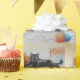 Den utmana svart katten stirrar på oss från henne som är comfy, placerar på dubbelsängen med henne två favorit- garnnystan! Nightstand med lampan i bakgrunden. En plats av inhemsk salighet - åtminstone till kattungen! Katherine älskar katter. Från den djura serien av vattenfärgsamlingen av Katherine Foltuz.