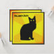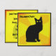 Den här Halloween-svarta katten med gult glödande ögon är sitta i mitten med en bakgrund för orange och gult. Inuti gräns finns en orange och gult med en yttre gräns av svart. En underbar Halloween-bild. Dessa inbjudningar är ett underbart sätt att bjuda in alla dina vänner. Finns i olika storlekar. Anpassa med all din egen information.