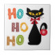 Svart katt med Ho Ho Ho-textdesign Kakelplatta