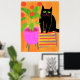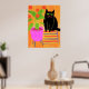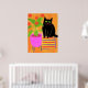 En berömvärd svart katt med grönt ögon är i närheten av en AI-konst.
