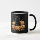 Bara ett sött mugg med en svart katt sitta bland en pil med pumpor