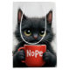 En flytande svart kattunge med stor grönt ögon har ett ljust rött mugg märkt "Nope". Text kan ändras.