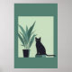 Svart Katt Minimalistisk Väggkonst Modern Grön Bot