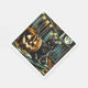 pappra servetter från halloween fest. Black Cat sitta på framporten bredvid en karvpumpad pumpa med fullt i bakgrunden.