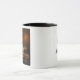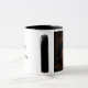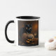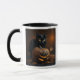 Svart katt och en spooky upp och ned på ansikte pumpa Halloween-kaffe mugg.