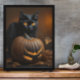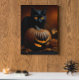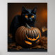 Svart katt och ett skämt upp och ned på ansikte pumkin Halloween-konst.