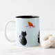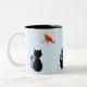 Svart katt och röd fågel Två-Tonad mugg