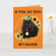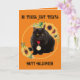 Var inte rädd för den här svarta katten. Den ger dig inte några bus, bara godsaker som denna ring av solrosor. Det finns en yta inuti kortet för ditt personliga meddelande.