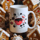 Det här vackra mugg har en söt svart katt som tar en mysigt dipp inuti ett ljust rosa kaffe kopp. Omgiven av att man flyter kaffebönor, blommor och söta nötter, är denna viskdesign en perfekt för kattälskare och alla som njuter av charm med sin morgonbrygga. Det är en roligt och ett lätt sätt att börja din dag.