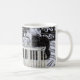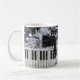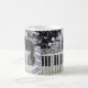 Svart katt på ett tangentbord kaffemugg