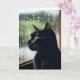 Svart katt tittar ut genom ett fönster med regndroppar för födelsedag.