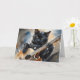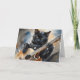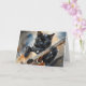 Vattenfärgssplatterkonst av en svart katt som spelar gitarr på detta tomma vykort.