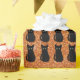 Svart katt, söt kattunge, mousserande orange glitt presentpapper