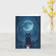 Personliggör detta tomma vykort med en söt svart kattunge som sitter i skogen under fullmåne med sin lilla svarta kattkamrat och en ljus vit kristall.