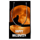 Happy halloween Fin design med svart katt under orangen måne.