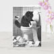 Svart katt vid födelsedag av en toalett - Papper Kort