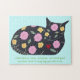 Färgning av ett svart kattäggläggande, dekorerat med blommor och växter som är upptagna som säkra för katt att äta, trycks på munstycken av anpassningsbar. Växterna omfattar Gerber daisy, nasturtium, spannmåls- och catnip, och är förtecknade på pusslet. Tack för att du shoppade CherylsArt på Zazzle.