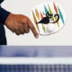 Färgfull illustration av Mid Century stil med svart katt och färglös dekoration på vit abstrakt