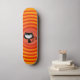 Sömmande katt med funkyns orange bakgrund. Skateboard för coola