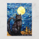Påminner om Vincent Van Goghs Starry Natt, denna svarta kattlexig mot en stjärnnattslättnad.