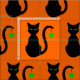 En silhouettetecknad av en svart katt med gröna ögon mot orangen (bakgrundsfärgen kan ändras). Hängningar för en gröntstjärna från katt svan.
