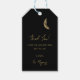 Svart och guld helgbröllop gynnar en märkre med guld måne, stjärnor och .