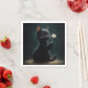 En liten svart kattunge sitter, som varsamt håller en vit daisy i tassar, med en lugn och ett nyfiket uttryck