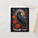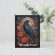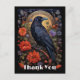 Tack-kort med en svart korp som sitter på en gren omgiven av röda blommor. Cool gotisk stämning.
